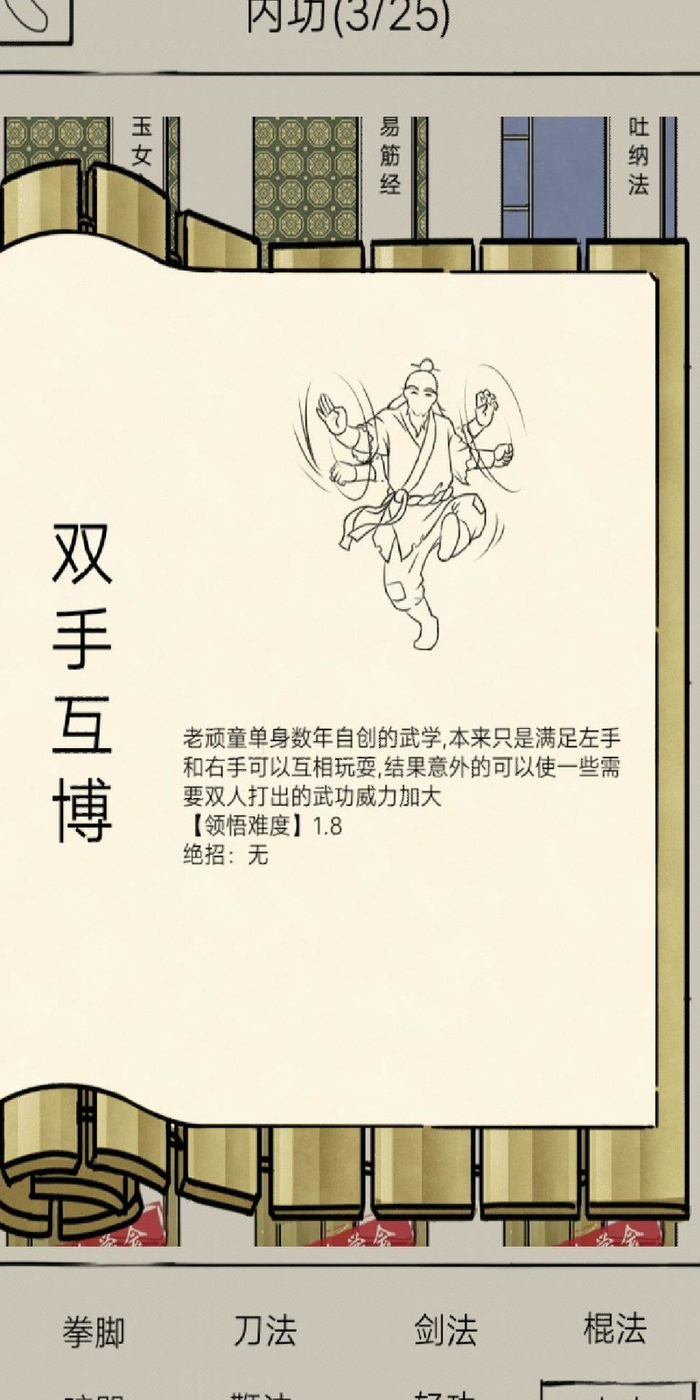 双持武学增益20倍系数,单持仅提升绝招。