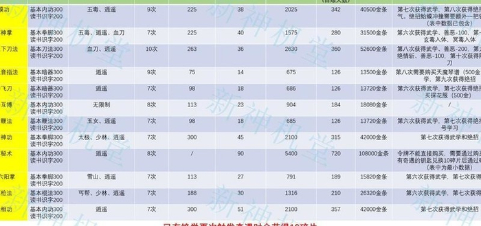 四、福地绝学(逍遥旗下所有福地绝学均可修习,故不再单独列出逍遥)