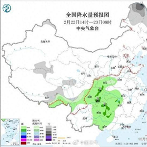 图1 全国降水量预报图(2月22日14时—23日08时)