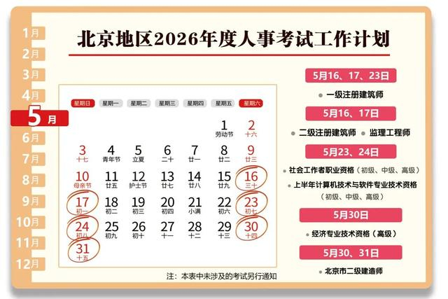 收藏!北京地区2026年度人事考试工作计划发布 北京日报 《北京日报》官方账号 02.2417:20 关注 重要消息2026年北京地区人事考试计划发布啦赶快点赞收藏! 注:本表中未涉及的考试另行通知来源:北京劳动就业报