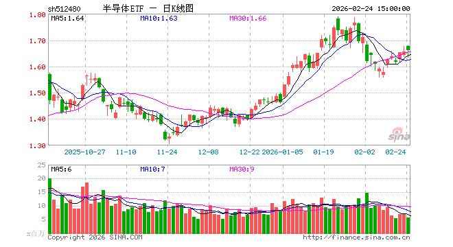 2月24日半导体ETF(512480)份额增加6800.00万份,最新份额135.63亿份,最新规模225.01亿元