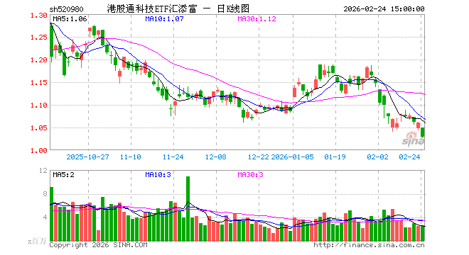 2月24日港股通科技ETF汇添富(520980)份额增加2600.00万份,最新份额53.34亿份,最新规模55.26亿元