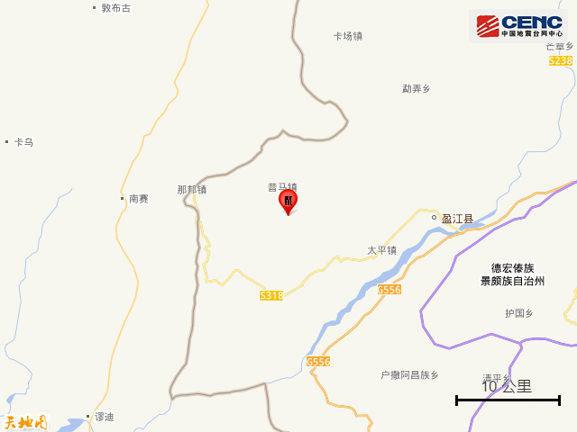 速报参数: 据中国地震台网正式测定,2月25日11时15分在云南德宏州盈江县发生4.6级地震,震源深度10公里,震中位于北纬24.71度,东经97.71度。