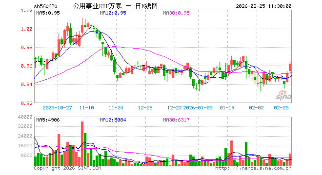 公用事业ETF万家(560620)涨1.05%,半日成交额89.62万元