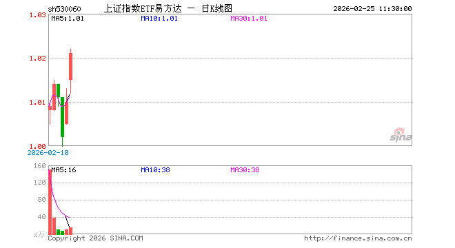 上证指数ETF易方达(530060)业绩比较基准为上证综合指数收益率,管理人为易方达基金管理有限公司,基金经理为聂启文,成立(2026-01-30)以来回报为1.00%。