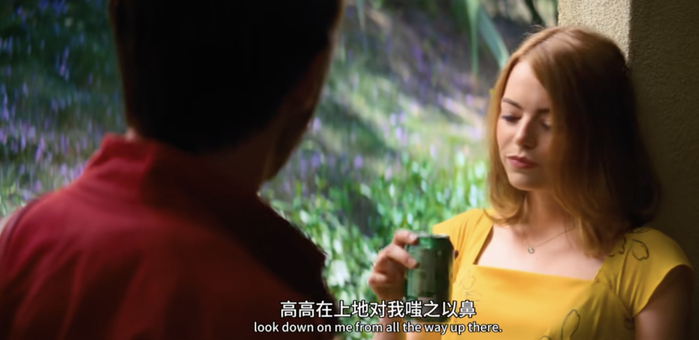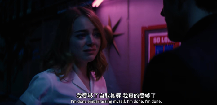 当Mia尽情倾吐着自己的沮丧,自己的“无能”,她不敢再去试镜,承受梦想落空的感觉,与其他人的嘲讽。