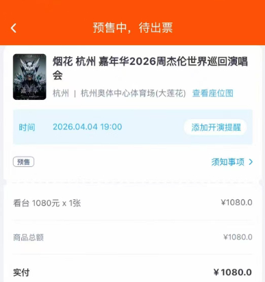 刚刚,周杰伦「烟花杭州·嘉年华Ⅱ」2026世界巡演杭州站的第一轮开票正式开始。票价从780元到2380元不等。