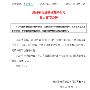 一位业内人士表示,对于上市酒企而言,调整核心产品出厂价格属于“重大事项”,必须通过正式公告对外披露。截至目前,贵州茅台并无相关公告发布。