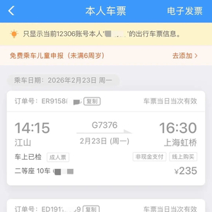 2月24日,上海一名网友在社交平台发帖反映,自己为顺利买到返乡车票,同时在两个第三方平台抢票,最终竟购得同一趟列车两张不同座位的车票。