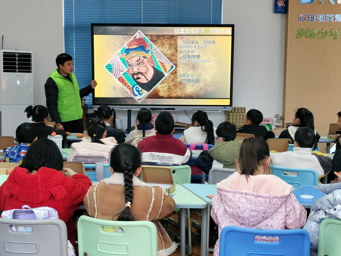 近日,德阳绵竹市的“爱心蜀托”托管班邀请绵竹年画非遗代表性传承人林国栋为孩子们上非遗美学课。