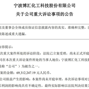 2月25日晚间,博汇股份公告称,公司与仕宝(天津)技术检测有限公司(以下简称“仕宝技术”)被富晨有限公司(EQUAL PLEASANT LIMITED,以下简称“富晨公司”)以侵权责任纠纷为由起诉至天津市第三中级人民法院(以下简称“天津第三中院”),涉案金额达6931.22万元。