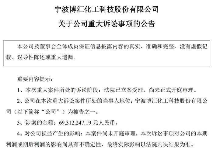 每经记者梳理博汇股份历年公告发现,2023年2月13日,博汇股份率先向浙江省宁波市中级人民法院(以下简称“宁波中院”)提起诉讼,以独立保函纠纷为由起诉富晨公司。彼时,博汇股份在过去12个月内累计诉讼、仲裁涉案金额已达1.23亿元,占最近一期经审计净资产绝对值的12.27%。其中,与富晨公司的独立保函纠纷判决金额为3891.32万元,该案件最终以独立保函执行支付完毕结案。