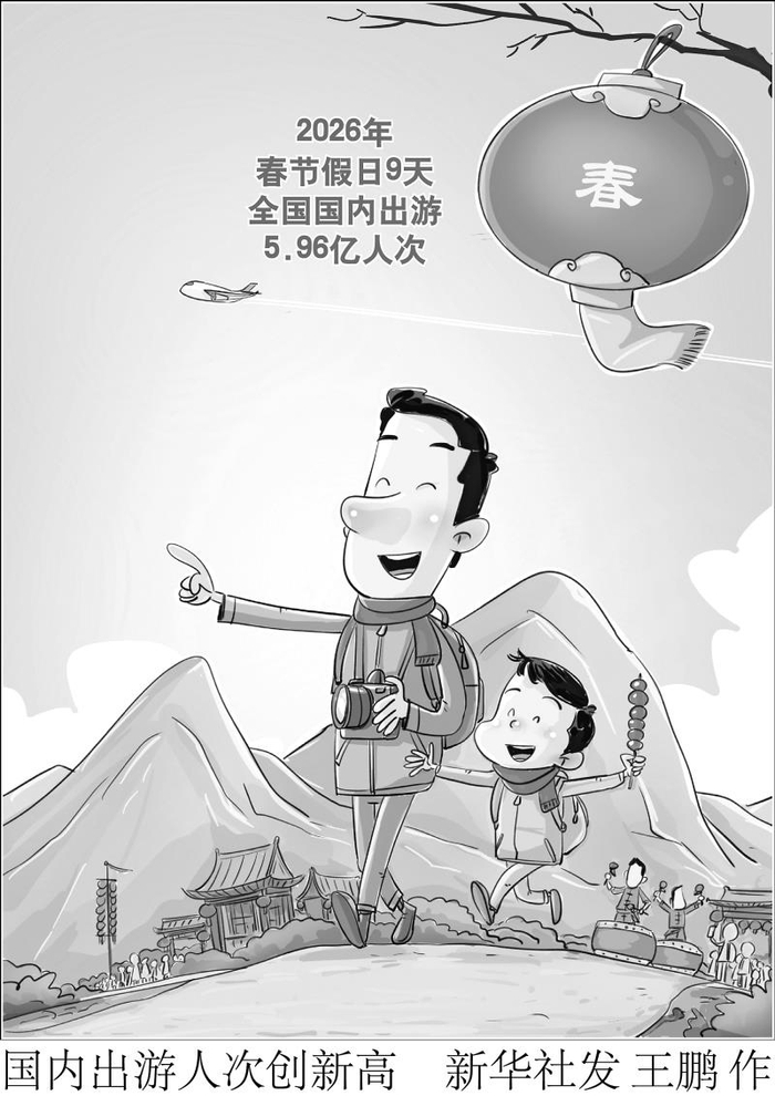 文化和旅游部2月24日公布2026年春节假期文化和旅游市场情况。春节假日9天,全国国内出游5.96亿人次,较2025年春节假日8天增加0.95亿人次;国内出游总花费8034.83亿元,较2025年春节假日8天增加1264.81亿元。假日游客人数和花费均创历史新高。