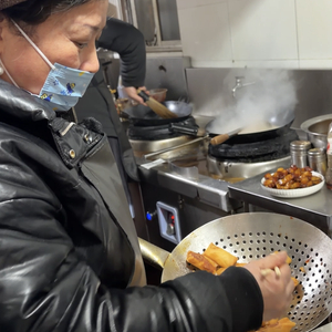 两人在下沙的高沙小区开了家小饭店,卖家常菜,整天围着灶台转。袁大姐早上九点到店里准备,彭大哥在家安顿好小女儿再来。晚上忙到十二点,有时客人吃到凌晨一两点,他们就守到一两点。前几年几乎全年无休,最多有三四天不营业,还是因为带孩子去看病,或者自己实在不舒服了去检查。