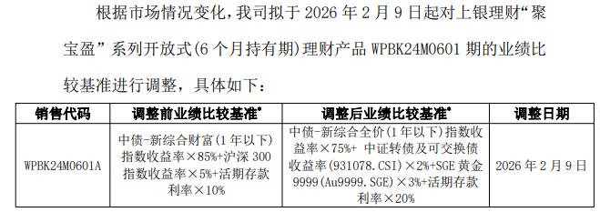 上银理财则从2月9日起调整了一款产品业绩比较基准的指数部分。
