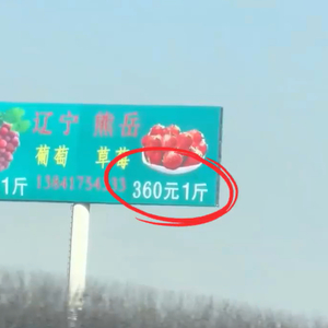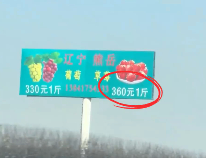 有网友发视频称,在高速公路上看到了“葡萄330元1斤、草莓360元1斤”的广告牌,如此高价让不少人直呼“吃不起”。据悉,水果是由辽宁营口澍诚国峰农业有限公司种植。