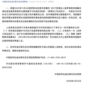 2月22日,中国驻符拉迪沃斯托克总领馆提醒领区中国公民留意俄长期居留许可办理新规。具体如下——