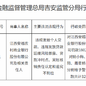 江西安福农村商业银行被罚180万元:违规发放个人贷款等