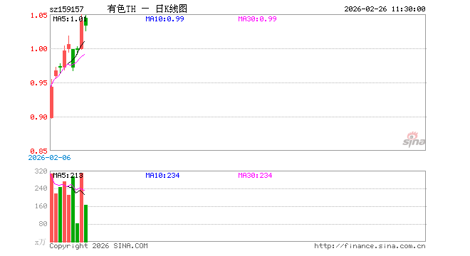 有色金属ETF天弘(159157)业绩比较基准为中证工业有色金属主题指数收益率,管理人为天弘基金管理有限公司,基金经理为贺雨轩,成立(2026-01-28)以来回报为3.91%。