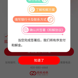 签署和解协议确认信息无误后,提交并签署《和解协议》。等待和解金支付完成签署后,基金公司将有序支付和解金至你填写的银行账户。