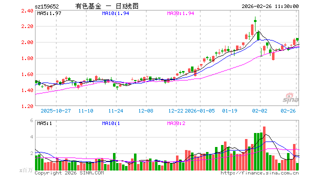 2月26日,截止午间收盘,有色ETF汇添富(159652)跌0.59%,报2.017元,成交额1.63亿元。有色ETF汇添富(159652)重仓股方面,紫金矿业截止午盘跌1.09%,洛阳钼业跌1.58%,北方稀土跌1.19%,华友钴业涨0.48%,中国铝业跌0.30%,赣锋锂业涨2.61%,山东黄金跌1.31%,云铝股份跌1.24%,中金黄金跌1.21%,天齐锂业涨4.79%。