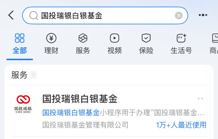 1. 打开支付宝,搜索“国投瑞银白银基金”。