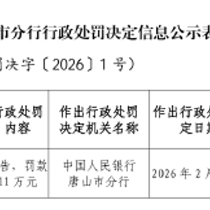 2月26日金融一线消息,中国人民银行唐山市分行行政处罚信息公开表显示,唐山市丰南舜丰村镇银行股份有限公司因违反支付结算、金融科技、反洗钱管理规定,被警告并罚款11万元。