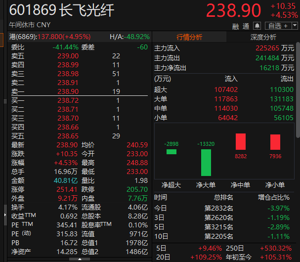 盘面上,隔夜英伟达财报超预期提振AI产业链情绪,CPO、铜缆、液冷服务器、PCB等AI硬件股集体大涨,杰普特、天孚通信等多股创出历史新高。电网设备板块同样受益AI浪潮大涨,北京科锐杭电股份收获涨停。长飞光纤涨超4%,天孚通信涨超6%,盘中均创新高,长飞光纤最新总市值为1978亿元,天孚通信总市值达2839亿元。