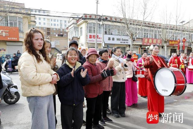 沿街两侧早已人头攒动、暖意融融,男女老少纷纷驻足观看,有人踮起脚尖、伸长脖颈,生怕错过精彩瞬间;有人拿出手机拍摄记录,定格新春热闹瞬间;孩子们追着队伍奔跑欢呼,清脆的笑声此起彼伏。“看着这热闹的表演,年味儿一下子就浓了!”金山镇徐福村村民王善通满脸喜悦,“祝金山镇发展越来越好,大家的日子越过越红火、越有奔头。”