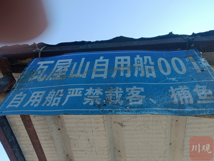 一艘村民自用船上挂有“瓦屋山自用船001 自用船严禁载客、捕鱼”的字样。