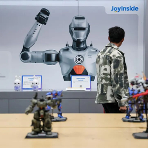 1月15日,在深圳市福田区的众擎机器人门店,顾客了解机器人等产品。(新华社记者梁旭摄)