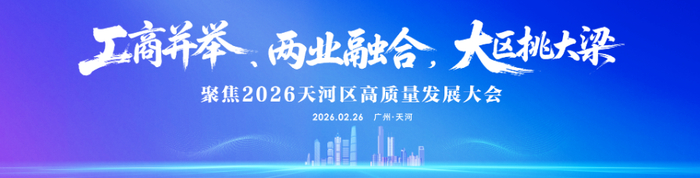 2月26日,继省、市高质量发展大会后,广州天河区在南方财经大厦召开全区高质量发展大会,聚焦“工商并举、两业融合,大区挑大梁”主题,吹响集结号,发出动员令。