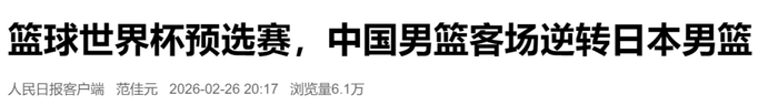 当地时间2月26日,2027年国际篮联篮球世界杯亚洲区预选赛第二窗口期焦点战在日本举行。客场比赛的中国男篮下半场绝地反击,最终逆转战胜日本男篮,拿下了一场至关重要的胜利,为世界杯小组出线争到主动权。
