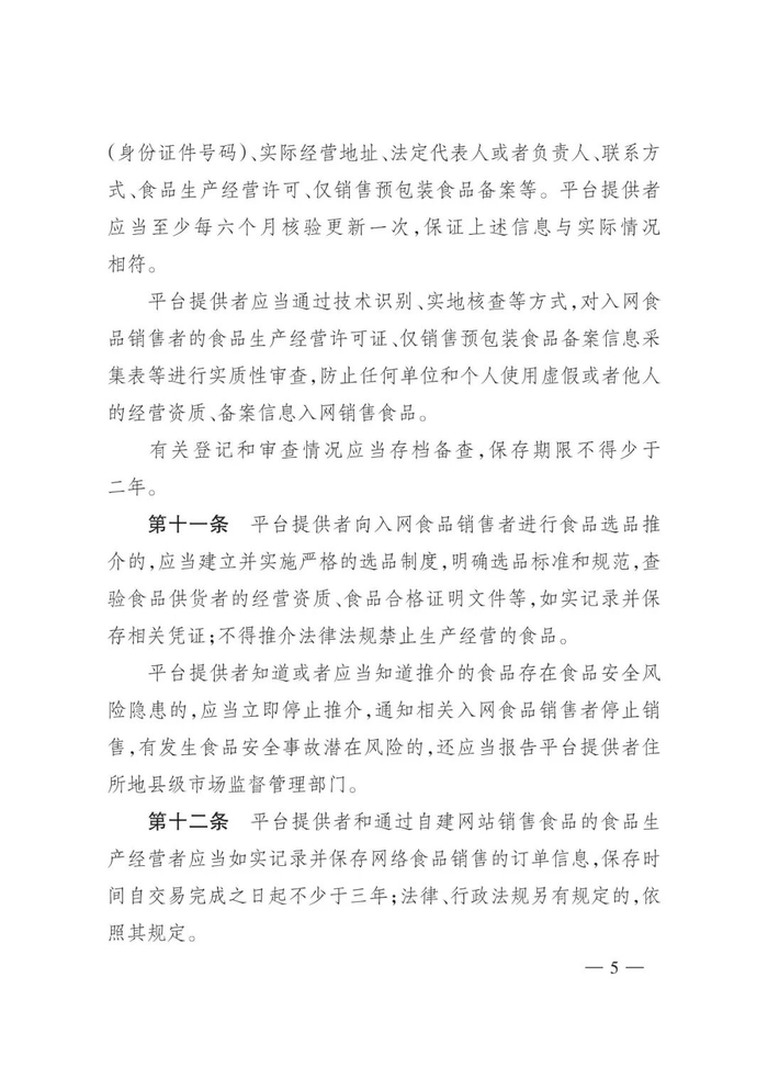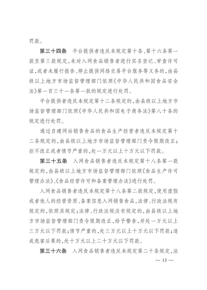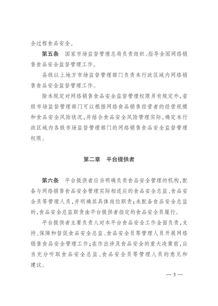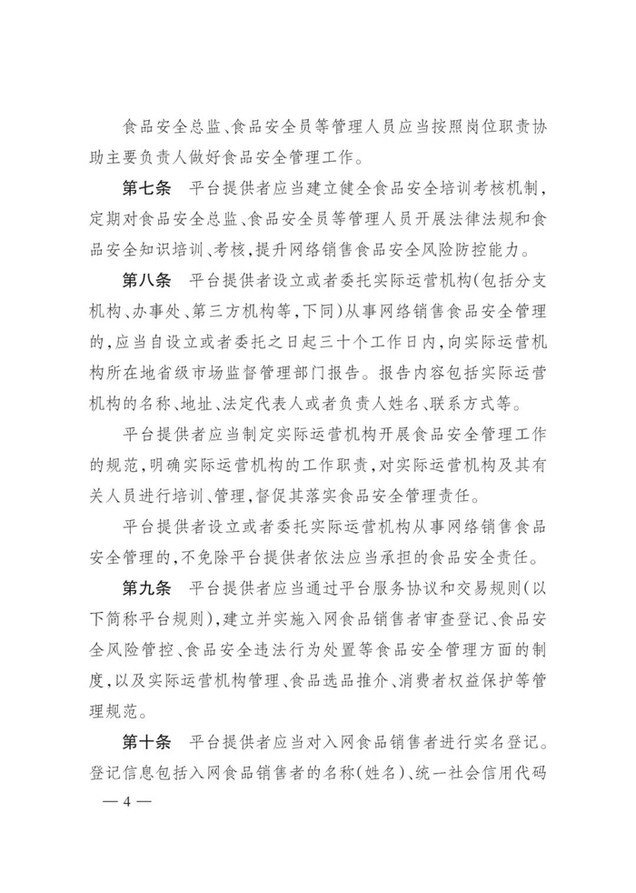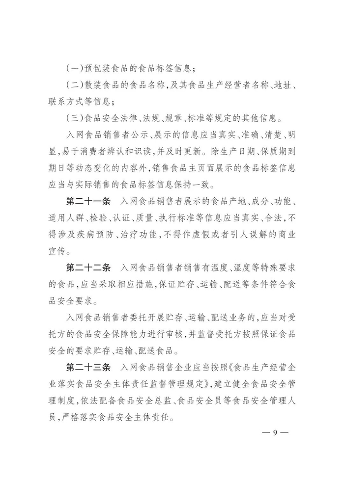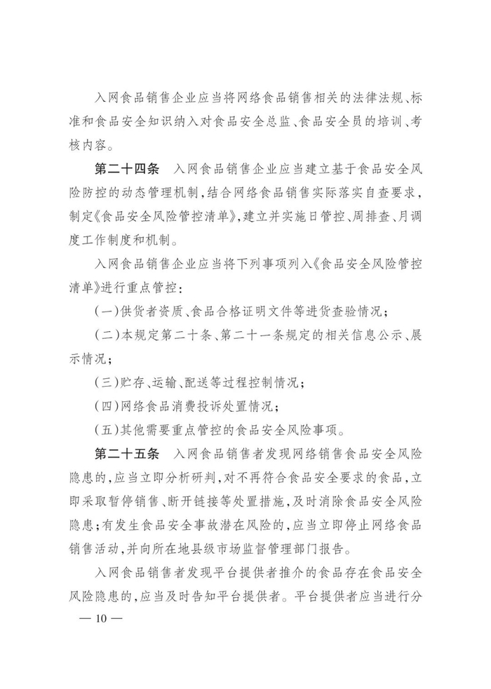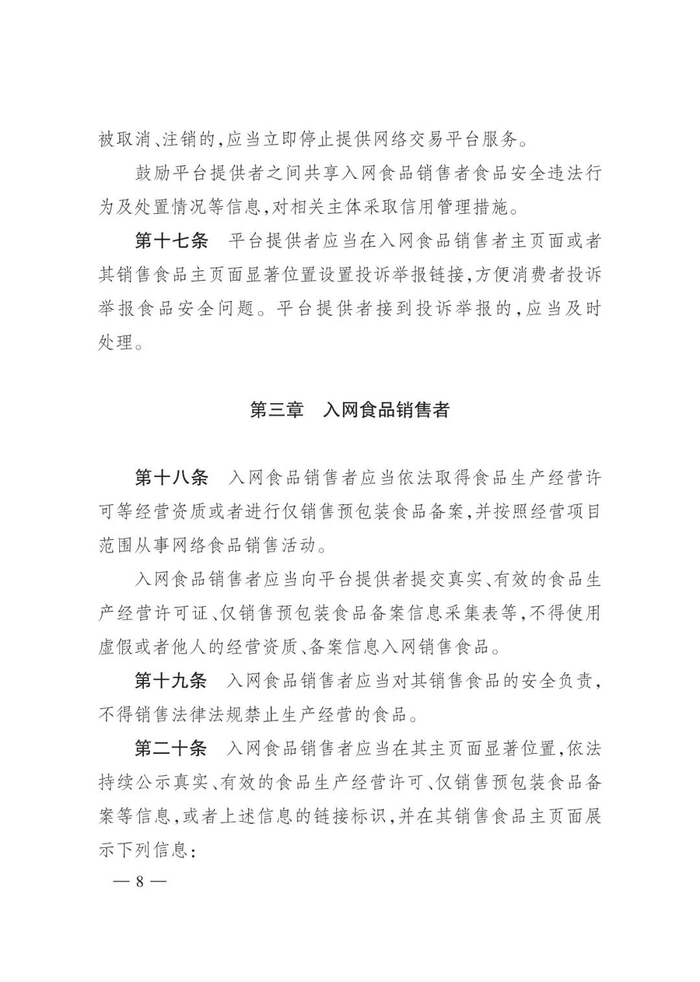 《网络食品销售经营者落实食品安全主体责任监督管理规定》