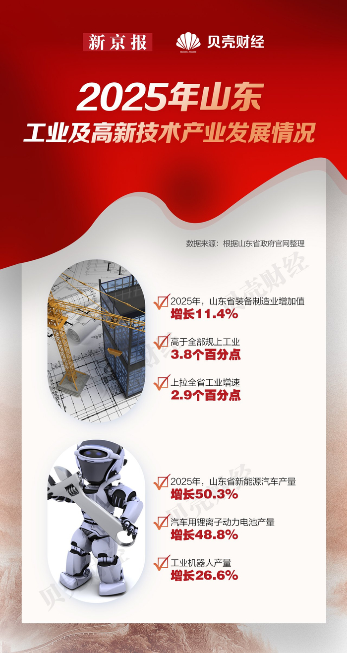 2018年,山东正式启动新旧动能转换重大工程,一场关乎产业根基的深刻变革就此展开。如今,转型成效已清晰显现:2025年,山东工业技改投资同比增长5.3%,装备制造业成为拉动工业增长的重要力量,增加值增长11.4%,高于全部规上工业3.8个百分点,上拉全省工业增速2.9个百分点。从产品看,新能源汽车、汽车用锂离子动力电池、工业机器人等中高端装备类产品产量分别增长50.3%、48.8%、26.6%。