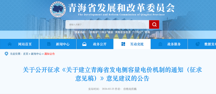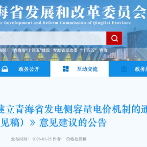 在国家政策明确方向之后,地方的发电侧容量电价机制也在逐步落地。2月25日,青海省发展和改革委员会发布《关于建立青海省发电侧容量电价机制的通知(征求意见稿)》(以下简称《征求意见稿》)。
