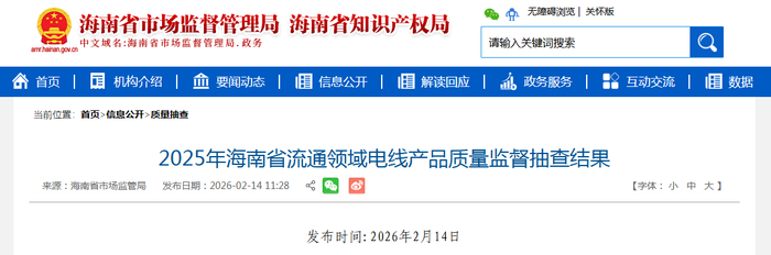 2025年海南省流通领域电线产品质量监督抽查结果公布