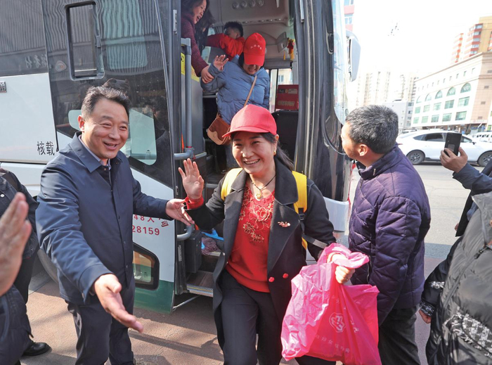 2月26日,甘肃礼县的“礼贤妹”有序下车。当日,216名来自甘肃礼县的“礼贤妹”乘坐就业直通专车顺利抵达北京。依托京甘劳务协作机制,由北京市东城区与甘肃省礼县人社部门组织的“点对点”来京务工活动,为节后进京的家政服务人员实现了“上车”与“上岗”的无缝衔接。 新京报记者 王贵彬 耿子叶 摄影报道