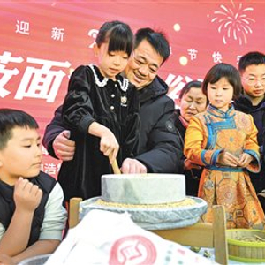 2月26日,在呼和浩特市图书馆,人们体验石磨加工莜麦面。农历正月初十,俗称“石头节”或“老鼠娶亲日”。这一天,在北方部分地区素有吃莜面的传统民俗。呼和浩特市图书馆举办“图书馆莜面会·年俗玩不停”传统手工莜面非遗体验活动,特邀莜面制作技艺内蒙古自治区级非遗代表性传承人现场传授技艺,让人们在亲手实践中感受中华优秀传统文化的独特魅力。本报记者 王磊 摄