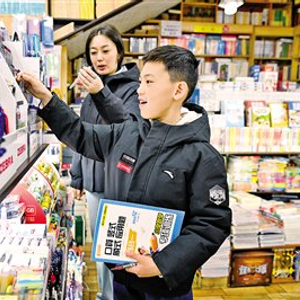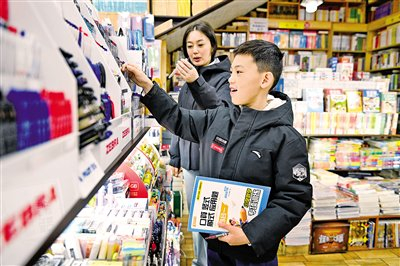 2月25日,家长带着孩子在呼和浩特市文化商城选购文具。随着开学临近,中小学生迎来“备齐装备”高峰期,线下文具与教辅采购热度持续,各商家备货充足,全力保障学生学习用品需求,助力广大中小学生以崭新面貌开启新学期的学习生活。本报记者 王磊 摄