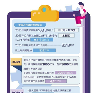 随着我国经济结构加快转型升级,金融服务需要适配经济高质量发展的要求。做好金融“五篇大文章”是中央金融工作会议提出的明确要求。中国人民银行的统计数据显示,从金融“五篇大文章”领域看,2025年末贷款余额108.8万亿元,同比增长12.9%;2025年12月新发放贷款加权平均利率为3.35%,比上年同期低0.41个百分点;2025年末服务企业和个人共计8218万户,比上年同期增加522万户。
