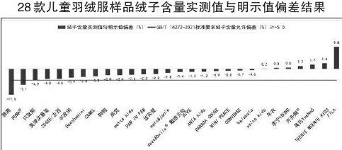 经检验,29款样品中,品牌为Dickies的样品未明示绒子含量;品牌为PUMA®和雅鹿的样品绒子含量未能达到国家推荐性标准GB/ T14272—2021所明示的要求;贝肽斯、PUMA®和雅鹿样品绒丝+羽丝的检测结果未能达到国家推荐性标准GB/T14272—2021所明示的要求。