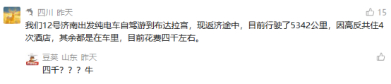 据高女士估计,加上出发前购买的物品和拖车费用,两人此次西藏之行预计共花费7000元左右,其中占比最大的是电车充电费。如今,高女士正在返回济南的途中,截止到发稿前,已经到达甘肃省境内,往返总路程预计在8000公里左右。(山东商报·山海新闻记者 邹庆洋 付英杰)