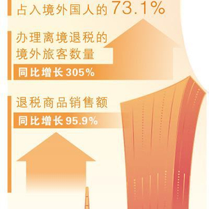 “中国游”带火“中国购”。2025年,我国办理离境退税的境外旅客数量同比增长305%,退税商品销售额同比增长95.9%。