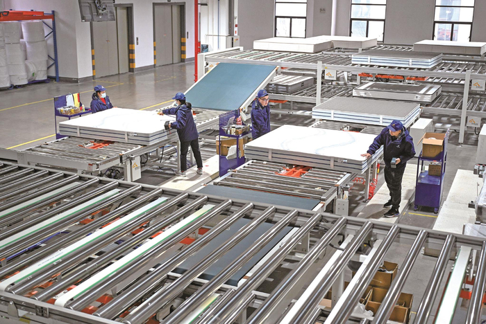 春节假期刚过,南湖区各企业吹响复工复产“集结号”,全力冲刺一季度“开门红”。昨天上午,位于余新镇的嘉兴慕思智能家居有限公司床垫智造车间内,一派繁忙有序的生产景象:智能机器人精准作业,工人们协同配合,共同完成床垫加工的全流程。