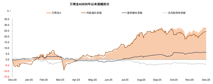 图表2:2025年A股上涨的主要贡献是风险溢价修复,盈利增长贡献较为有限