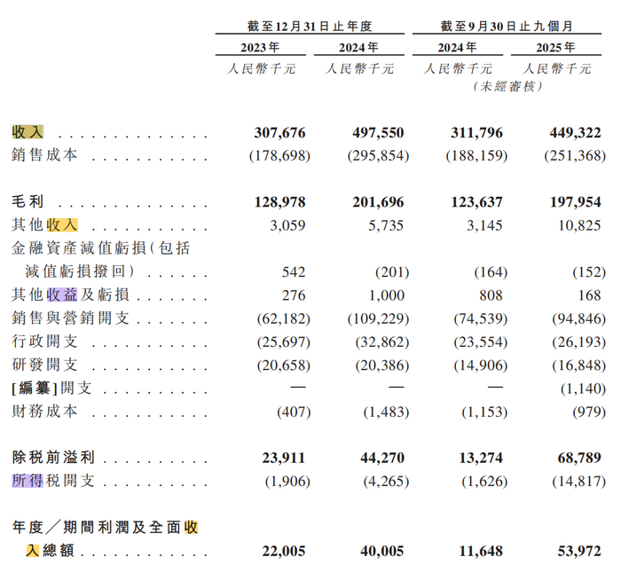2023年、2024年及2025年前三季度(以下简称报告期),格米莱实现总营收3.08亿元、4.98亿元、4.49亿元,同比增速分别为61.7%、44.1%;年度利润录得2200.50万元、4000.60万元、5397.20万元,同比分别增长81.8%、363.4%。