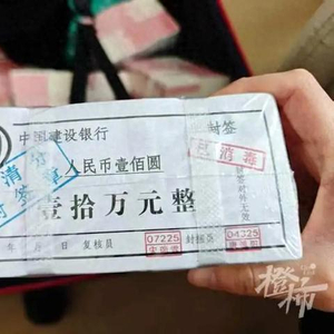 姚越操说,当时拿起一捆,分量比较轻,不像有十万元,仔细查看,表面还有中国建设银行的封签,还盖着银行员工的姓名章,“并且没有练功券的字样,很像是真正的现金。”