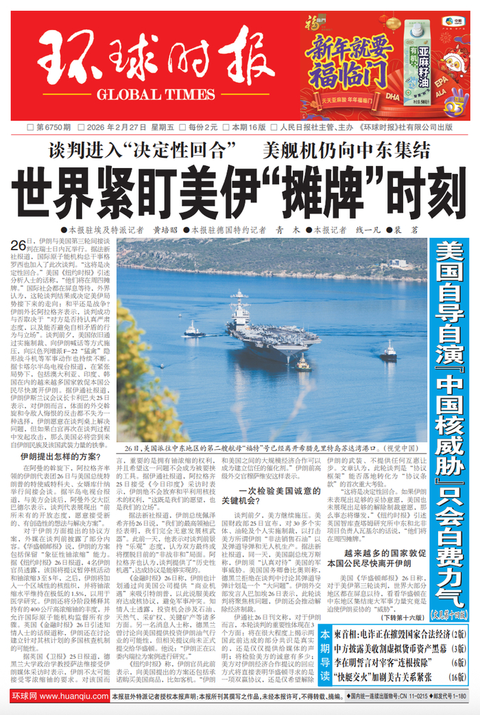 美国《华盛顿邮报》26日称,对于美伊第三轮谈判,世界大部分地区都在屏息以待,看看华盛顿在中东地区集结庞大军事力量究竟是迫使伊朗妥协的“威胁”,还是谈判无法达成美方满意的协议就发动攻击的“承诺”。
