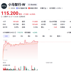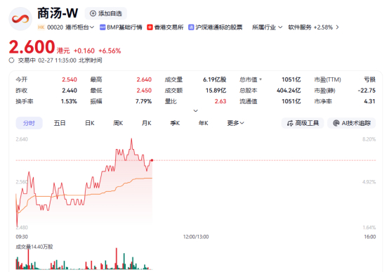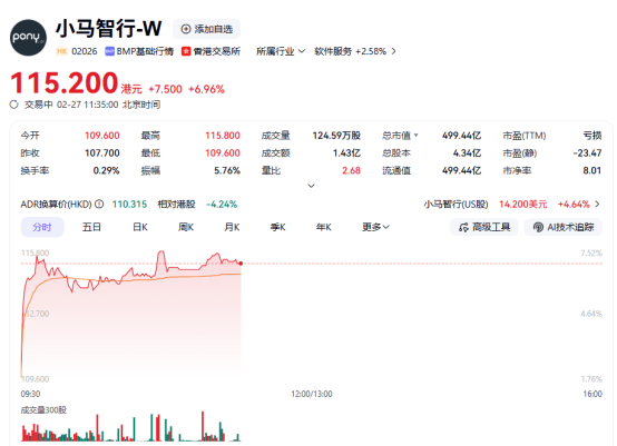 上证报中国证券网讯(李子健 记者 周亮)2月27日,小马智行-W、商汤-W、禾赛-W等个股走强,截至11时35分,上述公司分别上涨6.96%、6.56%及4.56%。